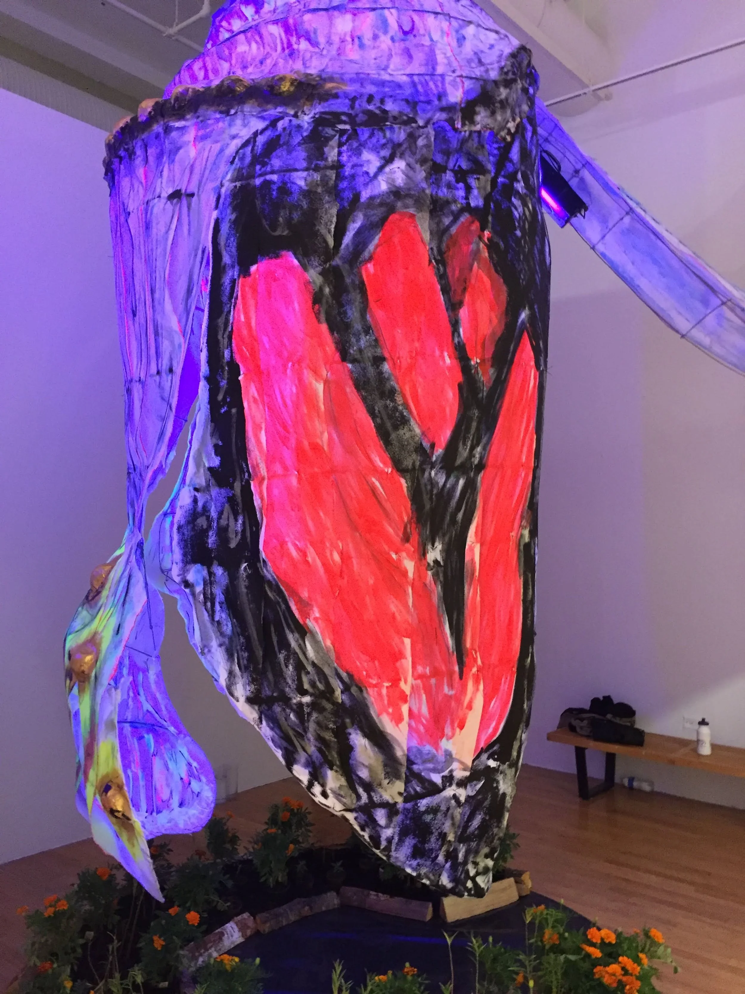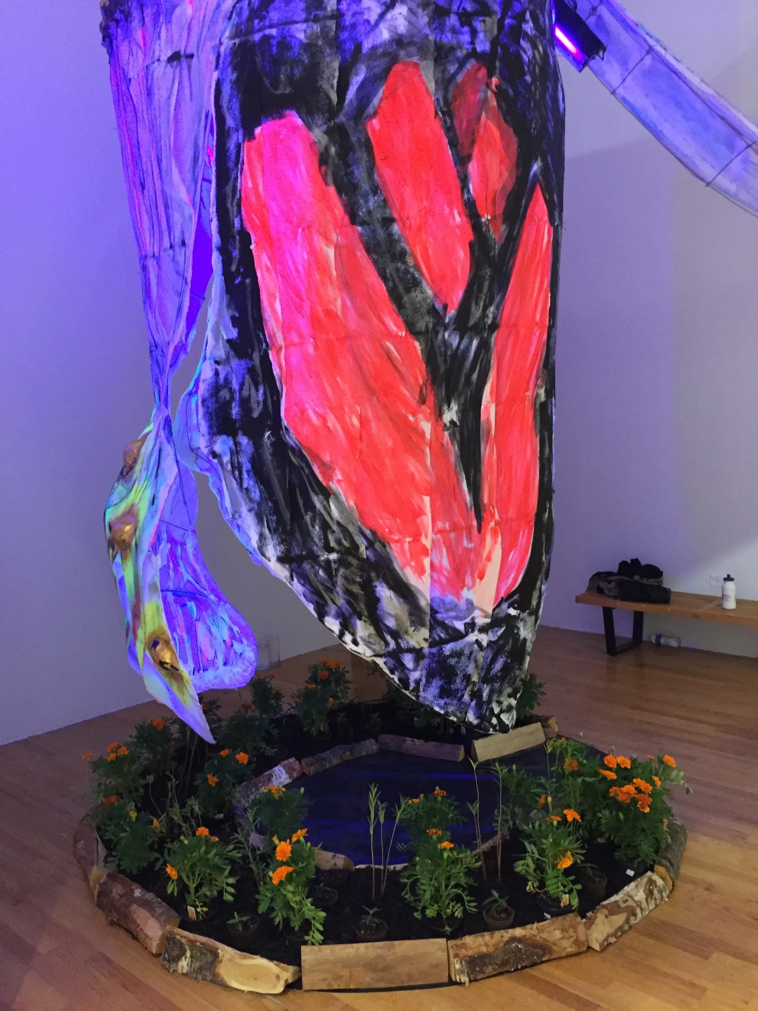 2021. 8’ x 5’ (diagonal 15’), mixed media. Installed at Brushwood Center, Riverwoods, IL for the traveling exhibition “Third Coast Disrupted: Artists + Scientists on Climate.”