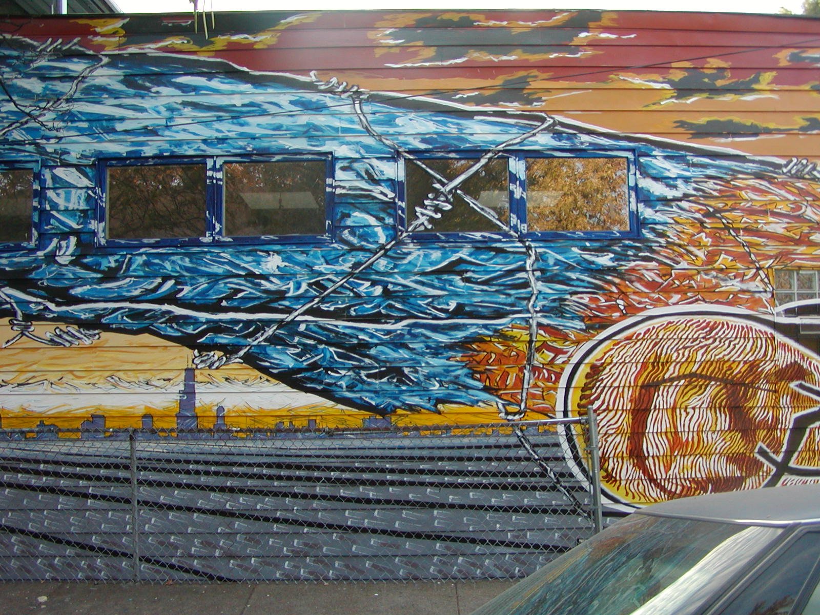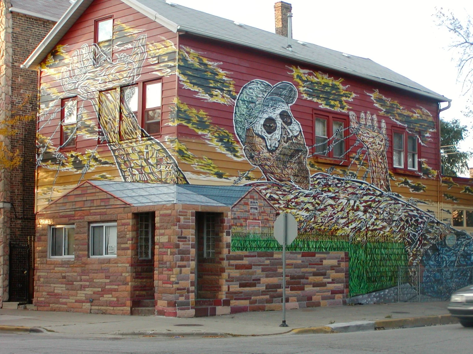 2005. ca. 3,500 total square feet, acrylic on aluminum siding painted on exterior walls of artist’s home and studio, Cullerton and Wolcott Streets, Chicago.